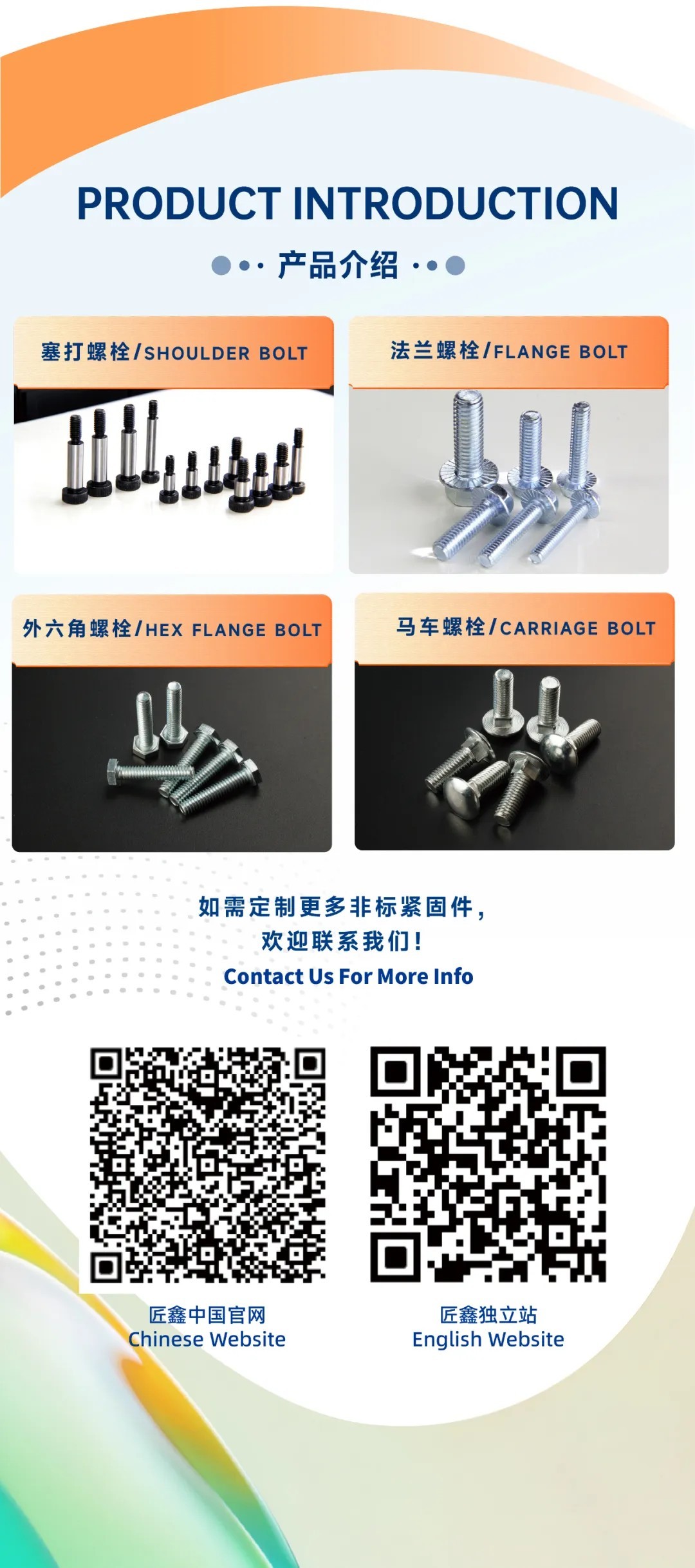 Hangzhou Jiangxin Industry Co., Ltd. শুধুমাত্র স্ট্যান্ডার্ড ফাস্টেনার পণ্য সরবরাহ করতে পারে না, তবে গ্রাহকদের বিশেষ চাহিদা অনুযায়ী অ-মানক ফাস্টেনারগুলি কাস্টমাইজ এবং উত্পাদন করতে পারে, বাজারের প্রতিযোগিতা আরও বৃদ্ধি করে।